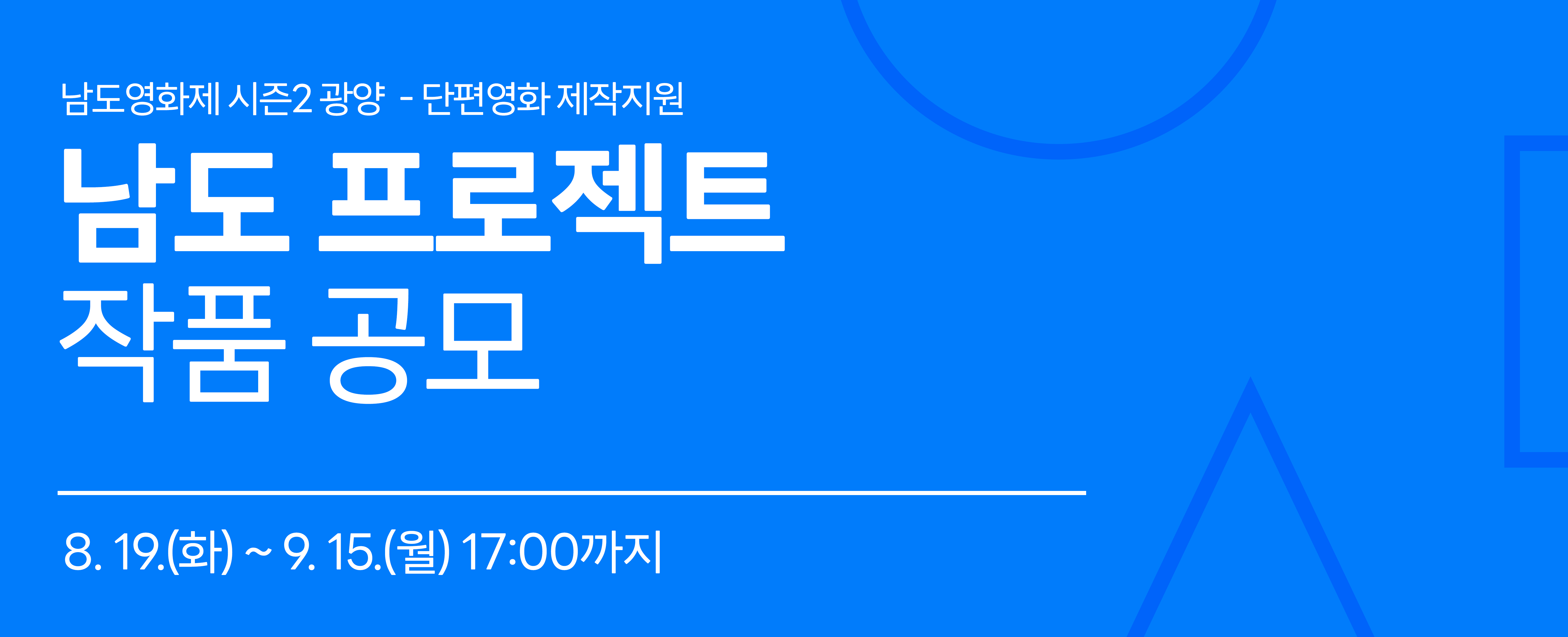 남도의 이야기를 담은 단편영화 제작 지원 사업 ‘남도 프로젝트’가 절찬리에 공모중입니다! 남도 프로젝트는 전남 지역의 영화 소재와 창작자 발굴, 영상 제작 활성화를 목표로 삼은 제작 지원 프로그램으로 시나리오 안에서 전라남도 또는 광양시의 역사, 인물, 공간 등을 소재로 다룬 작품을 대상으로 지원하고자 합니다. |