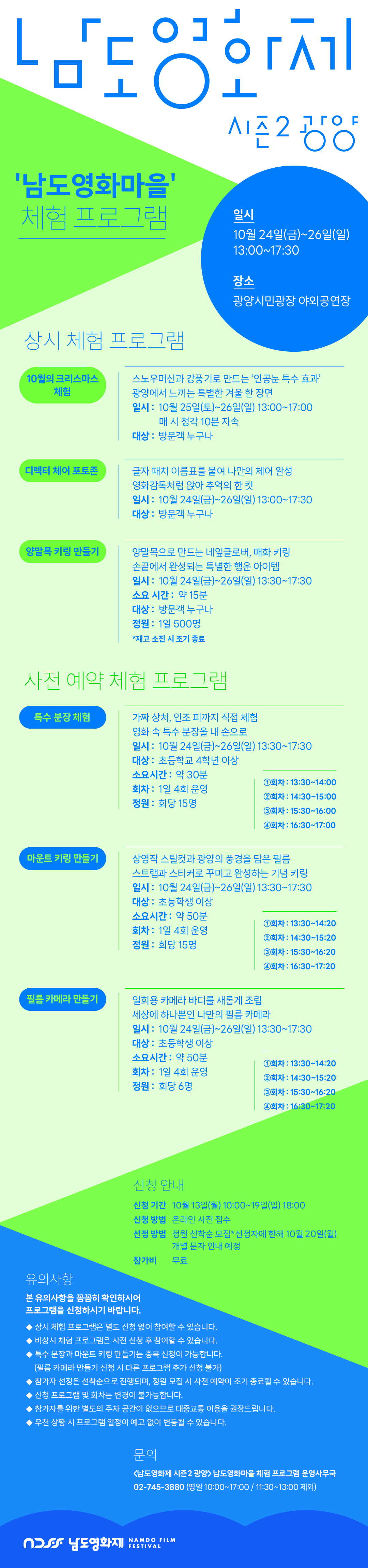 [남도영화제 시즌2 광양] 남도영화마을 체험 프로그램 안내 / 10. 24.(금)~10. 26.(일)